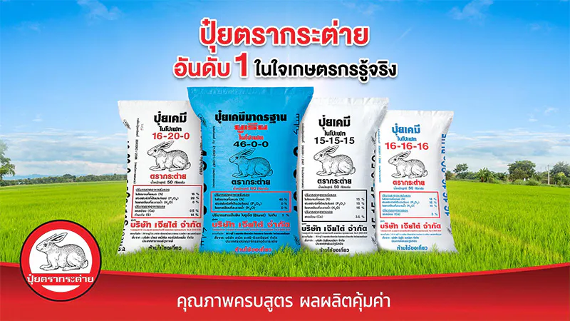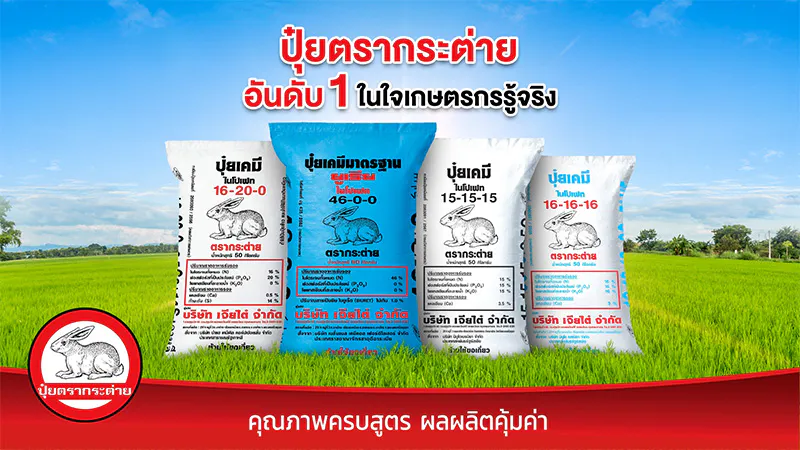 ปุ๋ยตรากระต่าย ปุ๋ยคุณภาพ “ตัวจริง” ที่พี่น้องเกษตรกรเชื่อมั่น และยกให้เป็นปุ๋ยอันดับ1 ในใจเกษตรกรรู้จริง โดยได้รับการยอมรับในประสิทธิภาพ เพราะใช้แล้วช่วยให้พืชเจริญเติบโตได้อย่างสมบูรณ์ แข็งแรง พร้อมให้ผลผลิตที่ดีมีคุณภาพ ไม่ว่าจะเป็นข้าว พืชไร่ และพืชสวน ซึ่งในความเป็น “ตัวจริง” ของปุ๋ยตรากระต่าย ยังมีอีกหลายเรื่องที่เกษตรกรยังไม่รู้ โดยครั้งนี้จะมาเปิดเผยความเป็น “ตัวจริง” ที่ซ่อนอยู่ เพื่อตอกย้ำความมั่นใจให้กับพี่น้องเกษตรกร กันครับ
