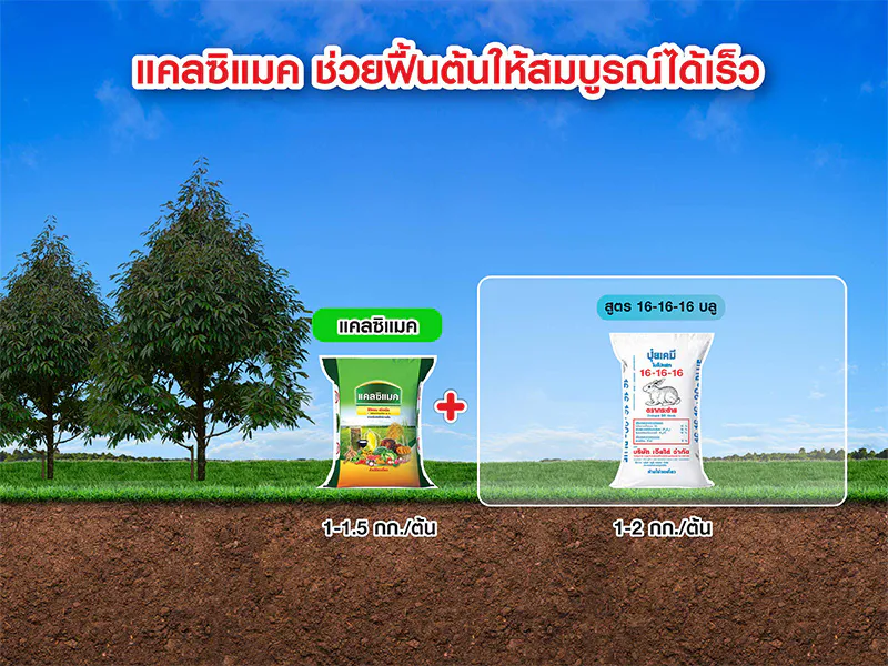 “แคลซิแมค” (สารเพิ่มประสิทธิภาพพืช) เป็นสารที่ช่วยส่งเสริมการเจริญเติบโตของพืช ทำหน้าที่ควบคุมการทำงานของกระบวนการต่าง ๆ ภายในพืช ไม่ว่าจะเป็นการบำรุงเซลล์และผนังเซลล์ ที่ช่วยให้พืชแข็งแรง รวมทั้งการสร้างเซลล์ใหม่เพื่อให้พืชเจริญเติบโตได้ดี โดยหน้าที่ของ“แคลซิแมค” (สารเพิ่มประสิทธิภาพพืช)นั้น ช่วยให้พืชดูดซับธาตุอาหารได้ดี มีความสมบูรณ์ขึ้น ทนต่อสภาพอากาศที่แปรปรวน และต้านทานโรคและแมลงได้ดี จึงแนะนำบำรุงร่วมกับปุ๋ยเคมี ตามระยะการเจริญเติบโตของพืชที่เหมาะสม