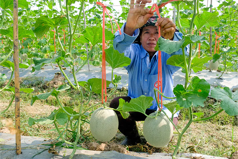 ผู้ปลูกเมล่อน ต.โพธิ์ตรุ อ.เมือง จ.ลพบุรี เกษตรกรหญิงแกร่งที่หันมาปลูกเมเล่อนควบคู่กับการทำนา แต่สามารถสร้างรายได้มากกว่าทำนาหลายเท่าตัว