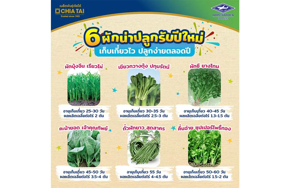 บริษัท เจียไต๋ จำกัด ผู้นำธุรกิจนวัตกรรมการเกษตรของไทย ขอแนะนำผักใบเขียว 6 ชนิด ที่ปลูกเองได้ไม่ยาก ปลูกได้ตลอดทั้งปี ทั้งยังใช้พื้นที่น้อย เพียงแค่มีพื้นที่ข้างบ้าน ริมรั้ว หรือแม้แต่ระเบียงของคอนโดหรืออะพาร์ตเมนต์ก็สามารถปลูกผักรับประทานเองได้แล้ว ซึ่งผักใบทั้ง 6 ชนิด ได้แก่ ผักบุ้งจีน เขียวกวางตุ้ง คะน้ายอด ถั่วฝักยาว ผักชี และคื่นฉ่าย ที่ล้วนอุดมด้วยสารคลอโรฟิลด์ ช่วยต้านอนุมูลอิสระ สร้างภูมิคุ้มกันให้ร่างกาย ต่อต้านการเกิดมะเร็ง ที่สำคัญคือปลูกง่ายและมีอายุเก็บเกี่ยวไว เพียง 1-2 เดือนก็สามารถเก็บนำมารับประทานได้แล้ว