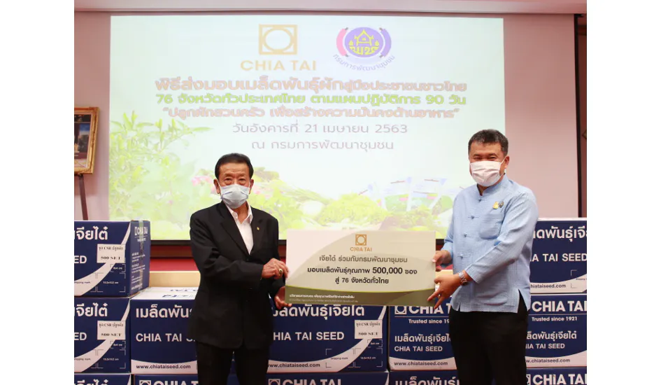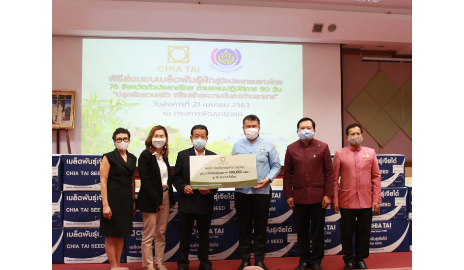 ด้วยเหตุนี้ กรมการพัฒนาชุมชน กระทรวงมหาดไทย จึงได้กำหนดแนวทางการดำเนินงานแผนปฏิบัติการ 90 วัน “ปลูกผักสวนครัว เพื่อสร้างความมั่นคงทางอาหาร” เพื่อให้คนไทยสามารถปลูกผักสวนครัวเพื่อเป็นแหล่งอาหารในครัวเรือน ลดภาระค่าใช้จ่ายในภาวะเศรษฐกิจชะลอตัว อีกทั้งยังเป็นการเตรียมความพร้อมให้ประชาชนยังสามารถพึ่งพาตนเองได้ในภาวะวิกฤต โดยได้รับความสนับสนุนจากบริษัท เจียไต๋ จำกัด มอบเมล็ดพันธุ์ผักสวนครัวคุณภาพดี 4 ชนิด เช่น เมล็ดพันธุ์คะน้ายอด ผักบุ้งเรียวไผ่ กระเพรา และพริกขี้หนู รวมจำนวนทั้งสิ้น 500,000 ซอง เพื่อนำไปแจกจ่ายให้กับประชาชนในพื้นที่ 76 จังหวัดทั่วประเทศ ได้มีผักสวนครัวที่ปลอดภัยและคุณภาพดีปลูกรับประทานเองภายในครัวเรือน ลดภาระค่าใช้จ่ายให้ประชาชน และสร้างความมั่นคงทางอาหารให้กับประเทศชาติ