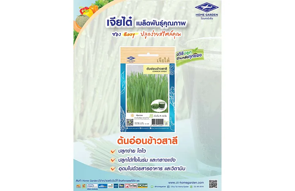 กรุงเทพฯ 15 ตุลาคม 2564 – เจียไต๋ โฮมการ์เด้น โดยกลุ่มบริษัทเจียไต๋ ผู้นำธุรกิจนวัตกรรมการเกษตรของไทย ส่งสินค้าใหม่แกะกล่องที่จะช่วยให้การทำสวนของคุณพ่อบ้านคุณแม่บ้านง่ายและสะดวกสบายยิ่งขึ้น อาทิ เมล็ดพันธุ์หญ้าเบอร์มิวด้า ปลูกง่าย หญ้าขึ้นเร็วภายใน 5-7 วัน ช่วยคลุมหน้าดินได้ดี รากยึดแน่น ให้การปลูกหญ้าบนสวนสวยๆ เป็นเรื่องธรรมดาที่ใครๆ ก็ทำได้ และสำหรับผู้ที่รักสุขภาพ เจียไต๋ โฮมการ์เด้น ขอเสนอเมล็ดพันธุ์ต้นอ่อนข้าวสาลี ที่สามารถปลูกได้ทั้งในที่ร่มและกลางแจ้ง ปลูกง่าย โตไว สามารถนำต้นอ่อนข้าวสาลีไปคั้นเป็นเครื่องดื่มหรือทำน้ำสลัดที่ดีต่อสุขภาพ อุดมด้วยสารอาหารและวิตามิน