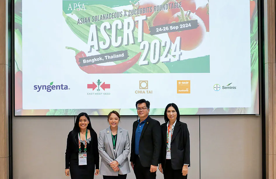 Asian Solanaceous Cucurbits Round Table 2024 หรืองานประชุมสัมมนาด้านการพัฒนาและปรับปรุงสายพันธุ์พืชตระกูลมะเขือและตระกูลแตง ในปีนี้ได้รวบรวมนักวิจัย ผู้เชี่ยวชาญ และผู้ที่สนใจจากทั่วโลกเข้าร่วมงานมากถึง 170 ราย เพื่อร่วมแลกเปลี่ยนประสบการณ์และถกเชิงลึกถึงประเด็นต่างๆ ได้แก่ เทคนิคการปรับปรุงสายพันธุ์ด้วยเทคโนโลยีที่ล้ำสมัย, ความหลากหลายของพันธุกรรม, การศึกษาจีโนมและการแก้ไขจีโนมพืช รวมถึง การใช้ AI และดิจิทัลเทคโนโลยีในเครื่องมือวัดค่าทางด้านสัณฐานวิทยา สรีรวิทยา และชีวเคมีของพืช นอกจากนี้ ผู้ร่วมงานยังได้รับโอกาสเข้าเยี่ยมชมสำนักงานพัฒนาวิทยาศาสตร์และเทคโนโลยีแห่งชาติ (สวทช.) เพื่อเรียนรู้เกี่ยวกับงานวิจัยที่ล้ำสมัยสำหรับนวัตกรรมด้านการเกษตร