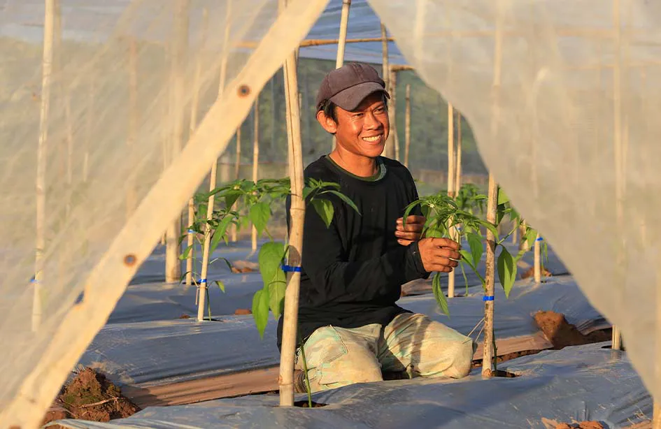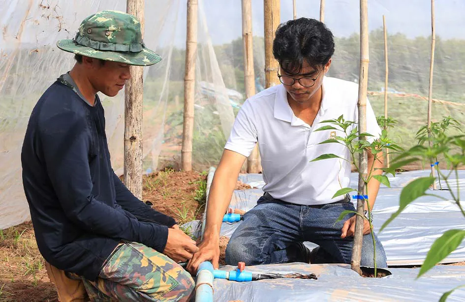 และหนึ่งในตัวอย่างของเกษตรกรรุ่นใหม่ที่ได้ประยุกต์ใช้เทคโนโลยีเข้ากับการเพาะปลูกแบบดั้งเดิมได้อย่างมีประสิทธิภาพคือ “คุณบอม ธวัชชัย ยอดวิชา” อดีตพนักงานออกแบบไฟฟ้าในเมืองใหญ่ที่ผันตัวเองสู่การเป็นเกษตรกร ซึ่งเป็นอาชีพที่สืบทอดจากครอบครัว โดยคุณบอมซึ่งเป็นคนรุ่นใหม่ที่มีความรู้และทักษะด้านเทคโนโลยีเป็นทุนเดิมอยู่แล้ว ได้ตัดสินใจนำเทคโนโลยีโรงเรือนมาประยุกต์ใช้ในแปลงเพาะปลูก โดยเลือกใช้วัสดุคลุมเป็นมุ้งขาวเพื่อช่วยป้องกันแมลง และสร้างสภาพแวดล้อมที่เหมาะสมสำหรับการเพาะปลูก นอกจากนี้ ยังได้นำความรู้ด้านไฟฟ้าของตนมาติดตั้งแผงโซล่าร์เซลล์แบบย่อม เพื่อผลิตกระแสไฟฟ้าอำนวยความสะดวกบนเถียงนา ซึ่งทั้งโรงเรือนและระบบโซลาร์เซลล์นี้ นอกจากจะช่วยให้คุณบอมทุ่นแรง ทุ่นเวลาแล้ว ยังช่วยให้การเพาะปลูกมีประสิทธิภาพยิ่งขึ้น และสามารถควบคุมคุณภาพการเพาะปลูกให้ได้ผลิตผลที่ดีมีคุณภาพ ต่อยอดเส้นทางอาชีพการเกษตรที่มั่นคง สู่การมีคุณภาพชีวิตที่ดีอย่างยั่งยืน