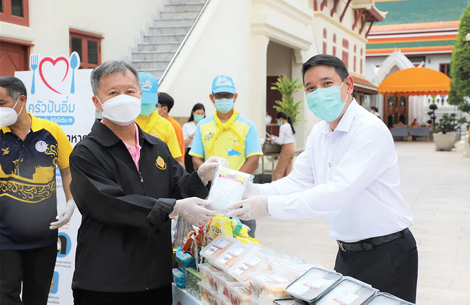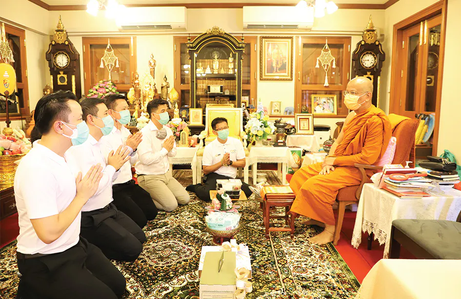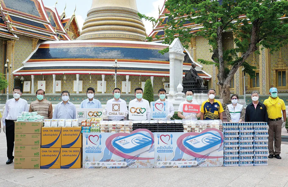 พร้อมกันนี้ คณะผู้บริหารเครือเจริญโภคภัณฑ์ ได้ถวายข้าวกล่องจำนวน 15,000 กล่อง และหน้ากากอนามัยซีพี 50,000 ชิ้น แด่สมเด็จพระมหาวีรวงศ์ เพื่อกระจายสู่ครัวเรือนในบริเวณใกล้เคียงตามเป้าประสงค์ของโครงการครัวปันอิ่ม ร้อยเรียงใจ สู้ภัยโควิด-19 ที่มุ่งบรรเทาความเดือดร้อนให้กับชุมชนและประชาชนที่ได้รับผลกระทบจากโควิด-19 ให้ก้าวผ่านช่วงวิกฤตนี้ไปด้วยกัน