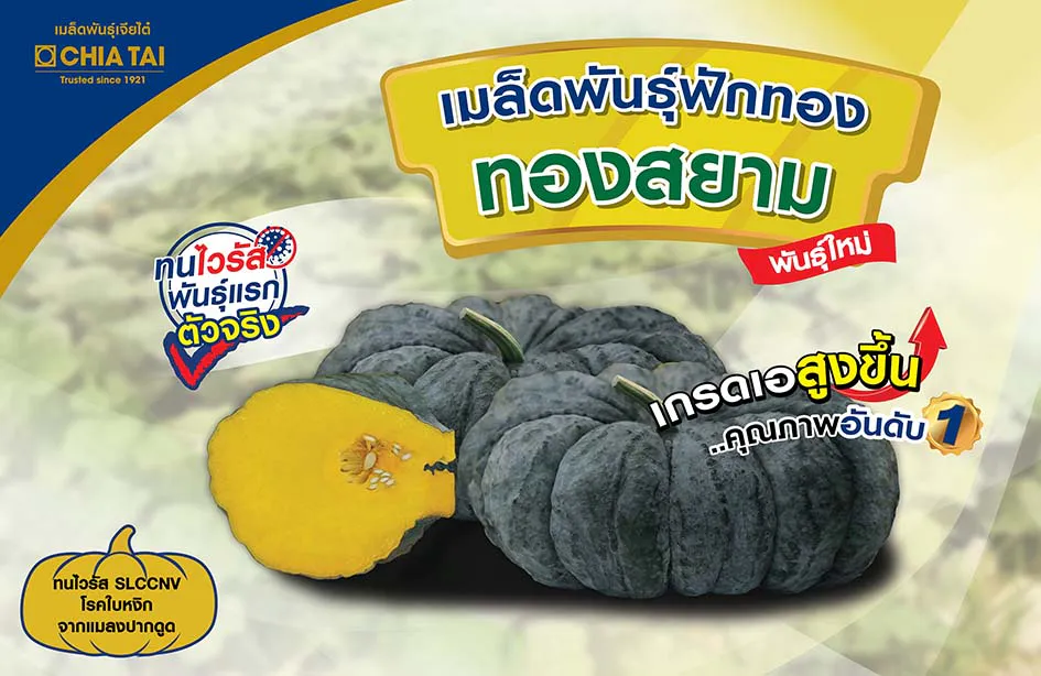 ดังนั้น เจียไต๋จึงได้ริเริ่มวิจัยปรับปรุงสายพันธุ์ฟักทองทนไวรัส ด้วยนวัตกรรมทันสมัยและเทคนิคทางโมเลกุล จนนำมาสู่สายพันธุ์ “ฟักทอง ทองสยาม” ซึ่งเป็นสุดยอดฟักทองสายพันธุ์แรกในไทยที่ทนไวรัส SLCCNV ได้จริง