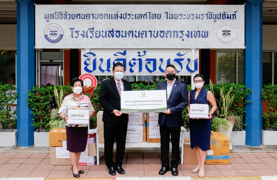 กรุงเทพฯ 24 กุมภาพันธ์ 2565 – นายประวินทร์ คุโรวาท ประธานบริหารด้านการเงินและบริหารกลาง บริษัท เจียไต๋ จำกัด พร้อมคณะ มอบปฏิทินตั้งโต๊ะที่ไม่ใช้แล้วจำนวน 620 ชิ้น ในโครงการปฏิทินปันสุขให้แก่มูลนิธิช่วยคนตาบอดแห่งประเทศไทย ในพระบรมราชินูปถัมภ์ โดยมีนางสาวจรัสศรี ศรีมณี ผู้อำนวยการสำนักบริหารมูลนิธิฯ และนายประสงค์ สุบรรณพงษ์ ผู้อำนวยการโรงเรียนสอนคนตาบอดกรุงเทพ ให้เกียรติรับมอบ ณ มูลนิธิช่วยคนตาบอดแห่งประเทศไทย ในพระบรมราชินูปถัมภ์ โดยปฏิทินเหล่านี้จะถูกนำไปผลิตสื่ออักษรเบรลล์ เพื่อสร้างประโยชน์และมอบโอกาสทางการศึกษาให้กับผู้พิการทางสายตาต่อไป