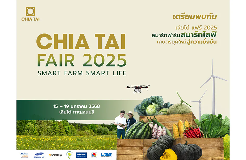 กรุงเทพฯ 12 ธันวาคม 2567 – เตรียมนับถอยหลังสู่เทศกาลงานใหญ่แห่งปี “เจียไต๋ แฟร์ 2025” โดย บริษัท เจียไต๋ จำกัด ผู้นำธุรกิจนวัตกรรมการเกษตรของไทย ภายใต้แนวคิด สมาร์ทฟาร์ม สมาร์ทไลฟ์ ที่จะทำให้คุณตื่นตาตื่นใจกับสายพันธุ์พืชคุณภาพมากกว่า 600 สายพันธุ์ ชมโซลูชันเจียไต๋ ตัวช่วยปลดล็อกข้อจำกัดทางการเกษตร รับชมสาธิตบินโดรนเกษตรแบบไร้คนขับ พร้อมเรียนรู้นวัตกรรมเกษตรใหม่ๆ หรือสนุกสนานไปกับการเที่ยวฟาร์ม เพลิดเพลินกับสวนต้นไม้แห่งความยั่งยืนกับดอกไม้นานาพันธุ์ ร่วมกิจกรรมเวิร์กชอปเพื่อความยั่งยืน และพลาดไม่ได้กับการชิมชอปสินค้าเกษตรนานาชนิด ระหว่างวันที่ 15-19 มกราคม 2568 เวลา 08:00-17:00 น. ณ เจียไต๋ ตำบลวังด้ง อำเภอเมือง จังหวัดกาญจนบุรี แล้วมาเข้าถึงเกษตรยุคใหม่อย่างยั่งยืนไปด้วยกัน ติดตามข้อมูลเพิ่มเติมได้ทาง Facebook เจียไต๋ Chia Tai: www.facebook.com/Chiatai.group.official สำหรับผู้ที่สนใจเข้าชมเป็นหมู่คณะ สามารถลงทะเบียนล่วงหน้าได้ที่ https://bit.ly/ChiaTaiFair2025-Register-PublicDay