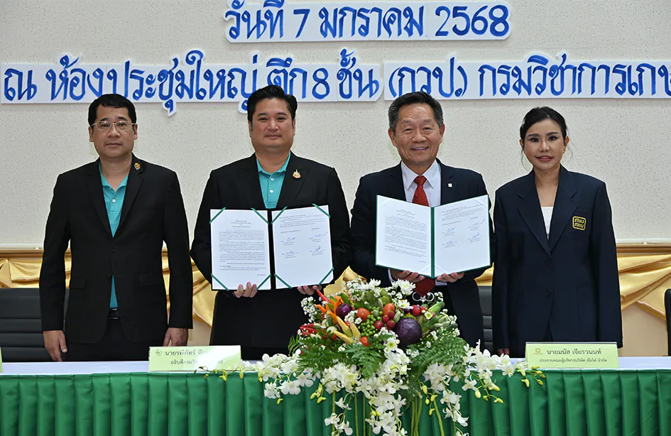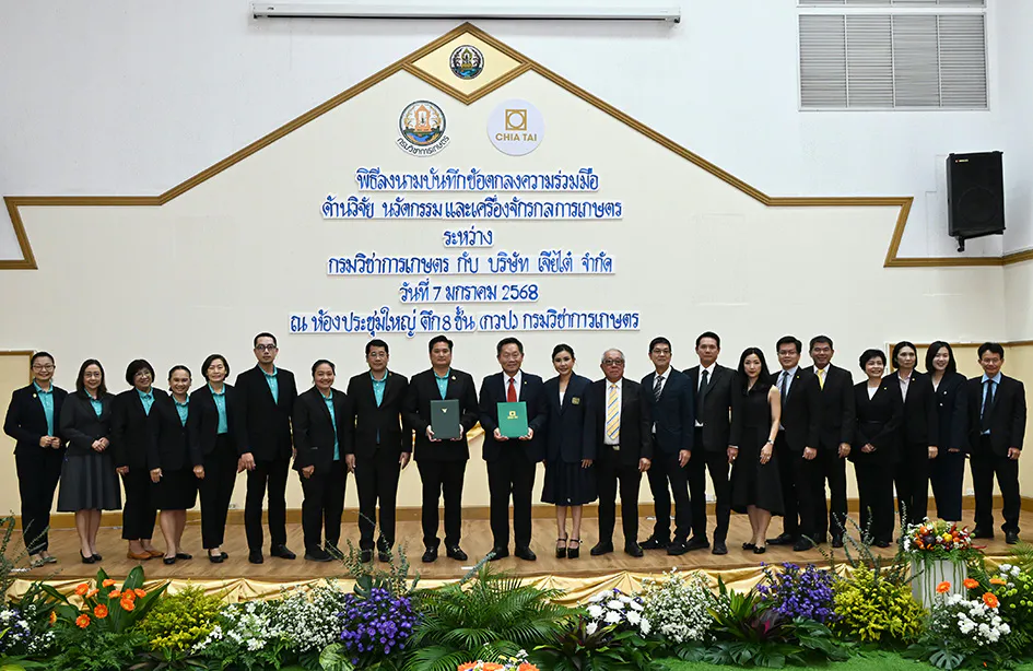 วันที่ 7 มกราคม 2568 นายรพีภัทร์ จันทรศรีวงศ์ อธิบดีกรมวิชาการเกษตร และนายมนัส เจียรวนนท์ ประธานคณะผู้บริหาร บริษัท เจียไต๋ จำกัด ได้ลงนามบันทึกข้อตกลงความร่วมมือด้านวิจัย นวัตกรรม และเครื่องจักรกลการเกษตรระหว่างกรมวิชาการเกษตร กับ บริษัท เจียไต๋ จำกัด โดยทั้ง 2 ฝ่ายได้เล็งเห็นถึงความสำคัญของการวิจัย นวัตกรรมและเครื่องจักรกลการเกษตร สำหรับขอบเขตความร่วมมือทางวิชาการในด้านการวิจัย เน้นหลักแนวคิด “ตลาดนำ นวัตกรรมเสริม เพิ่มรายได้” ภายใต้การจัดการทรัพยากรทางการเกษตรอย่างสมดุล ตามนโยบายของ ศ.ดร. นฤมล ภิญโญสินวัฒน์ รัฐมนตรีว่าการกระทรวงเกษตรและสหกรณ์