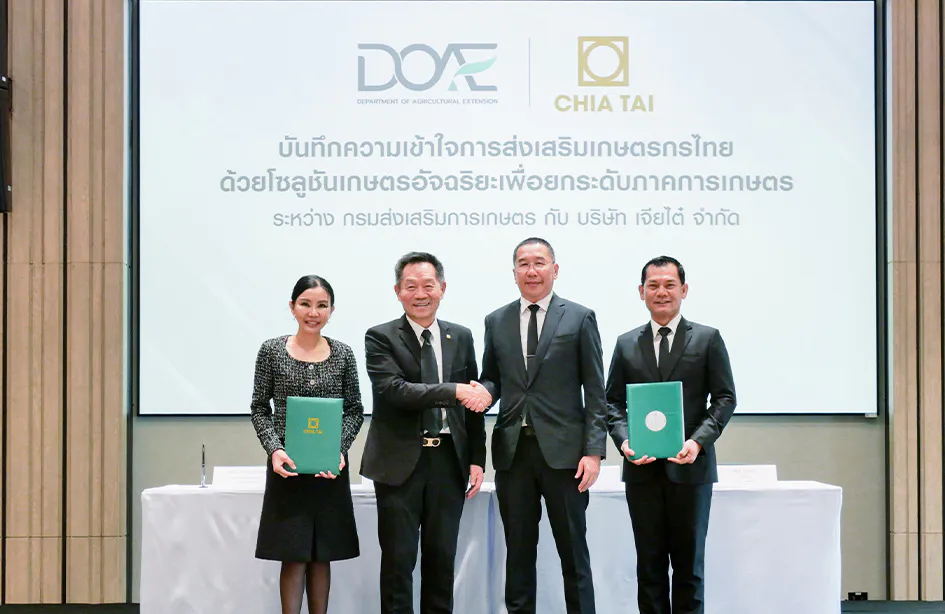 นายพีรพันธ์ คอทอง อธิบดีกรมส่งเสริมการเกษตร กล่าวว่า การลงนามบันทึกความร่วมมือกับ “เจียไต๋” ครั้งนี้ เน้นย้ำการพัฒนาเพื่อพัฒนาวิชาการเกษตรและยกระดับกระบวนการผลิตของเกษตรกรไทยให้ก้าวหน้าอย่างเป็นรูปธรรม สอดคล้องกับนโยบายร้อยเอก ธรรมนัส พรหมเผ่า รองนายกรัฐมนตรี และรัฐมนตรีว่าการกระทรวงเกษตรและสหกรณ์ ที่ต้องการยกระดับสินค้าเกษตรและบริการมูลค่าสูง ให้การผลิตสินค้าเกษตรที่มีคุณภาพได้มาตรฐานตรงกับความต้องการของตลาด ยกระดับศักยภาพ ของเกษตรกร ส่งเสริมเกษตรกร/สถาบันเกษตรกรเป็นผู้ให้บริการทางการเกษตรครบวงจร และเป็นการสร้างโอกาสให้กับเกษตรกร เพื่อยกระดับทักษะทั้ง Reskill และ Upskill ของเกษตรกรให้พร้อมรับการเปลี่ยนแปลง