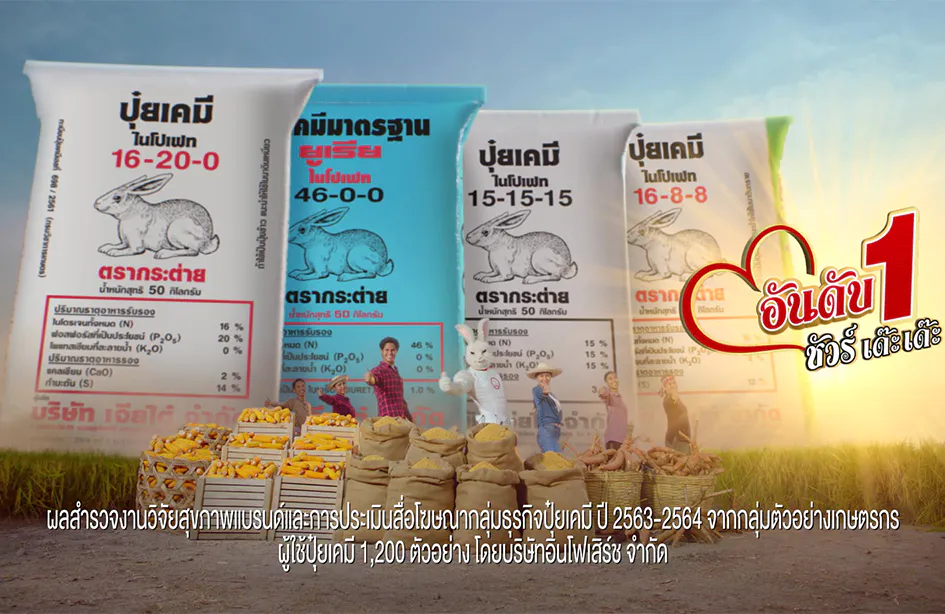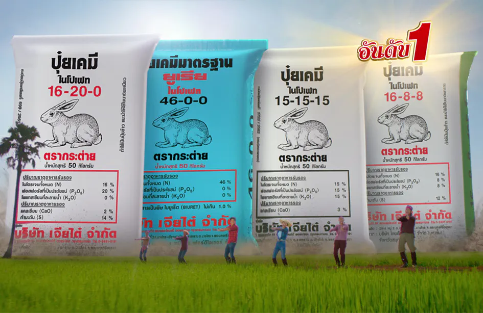 ปุ๋ยตรากระต่ายมุ่งมั่นคัดสรรผลิตภัณฑ์ปุ๋ยเคมีคุณภาพดี โดยมีสูตรปุ๋ยที่หลากหลายและเหมาะสมกับทั้งนาข้าว พืชไร่ และพืชสวน การันตีด้วยระบบบริหารคุณภาพ ISO 9001:2015 นอกจากนี้ ยังตอกย้ำความเป็นที่หนึ่งในใจเกษตรกรด้วยผลสำรวจงานวิจัยสุขภาพแบรนด์ และการประเมินสื่อโฆษณากลุ่มธุรกิจปุ๋ยเคมี ปี 2563-2564 จากกลุ่มตัวอย่างเกษตรกรนาข้าว พืชไร่ และพืชสวนผู้ใช้ปุ๋ยเคมี 1,200 ตัวอย่าง ที่ยกให้ปุ๋ยตรากระต่ายเป็นขวัญใจอันดับหนึ่งของเกษตรกร เพราะสามารถช่วยให้ผลิตผลดี มาเต็มแบบชัวร์ เด๊ะเด๊ะ