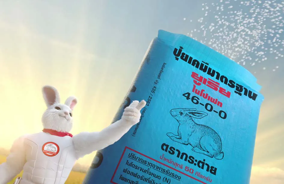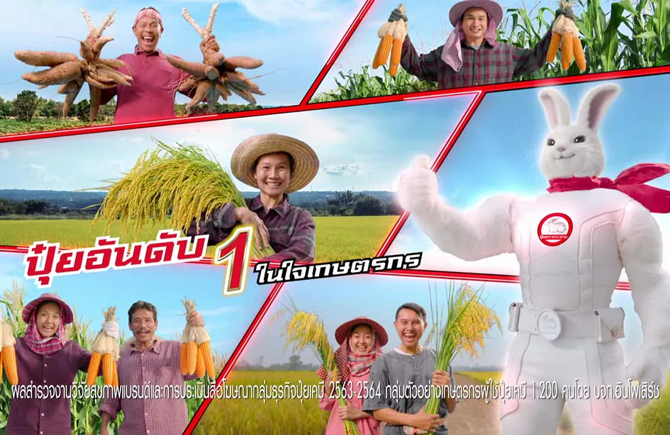 ครั้งนี้ ปุ๋ยตรากระต่ายได้ตอกย้ำความเป็นอันดับ 1 รวมถึงความคุ้มค่าที่เกษตรกรต่างยอมรับผ่านเรื่องราวในภาพยนตร์โฆษณาใหม่ล่าสุด “คุ้มค่าดีไม่มีเปลี่ยนใจ” ที่ปุ๋ยตรากระต่ายเป็นฮีโร่อยู่เคียงข้างเกษตรกรไทย เมื่อมีปุ๋ยตรากระต่ายก็จะมีผลิตผลที่ดี มั่นใจ ไม่ผิดหวัง และยังเสริมความสนุกสนานด้วยบทเพลงที่ประยุกต์จากทำนองเพลง “คุณลำไย” ของคุณลูกนก สุภาภร ให้พี่น้องเกษตรกรสนุกสนานไปกับทำนองติดหูและชื่นใจไปกับผลิตผลคุณภาพดีติดใจ ทั้งนี้ ปุ๋ยตรากระต่ายได้คัดสรรปุ๋ยเคมีคุณภาพดีจากแหล่งผลิตชั้นนำทั่วโลก เพื่อส่งมอบสูตรปุ๋ยที่หลากหลายและเหมาะสมตามความต้องการของพืชแต่ละชนิด ให้พี่น้องเกษตรกรเลือกใช้ได้แบบมั่นใจ ทั้งนาข้าว พืชไร่ และพืชสวน การันตีด้วยระบบบริหารคุณภาพ ISO 9001:2015